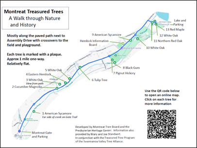 The “Treasured Tree Walk” has been rescheduled for Wednesday, November 12, 2025 at 3:30 pm. Starting from the Nature Center. The walk will be led by Nancy Midgette of the Presbyterian Heritage Center and Jason Nanz, the MRA Ranger. It will feature a mix of Montreat history and nature including many of the Montreat Treasured Trees. The walk is approximately two miles and relatively flat. It is sponsored by the Montreat Tree Board, the Presbyterian Heritage Center, and the MRA Nature Center.