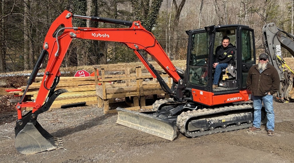 The new Kubota excavator, even though it is smaller than the old Volvo, is more powerful and maneuverable. It operates in narrow spaces like we have in Montreat and rotates 360 degrees for more efficient operations.